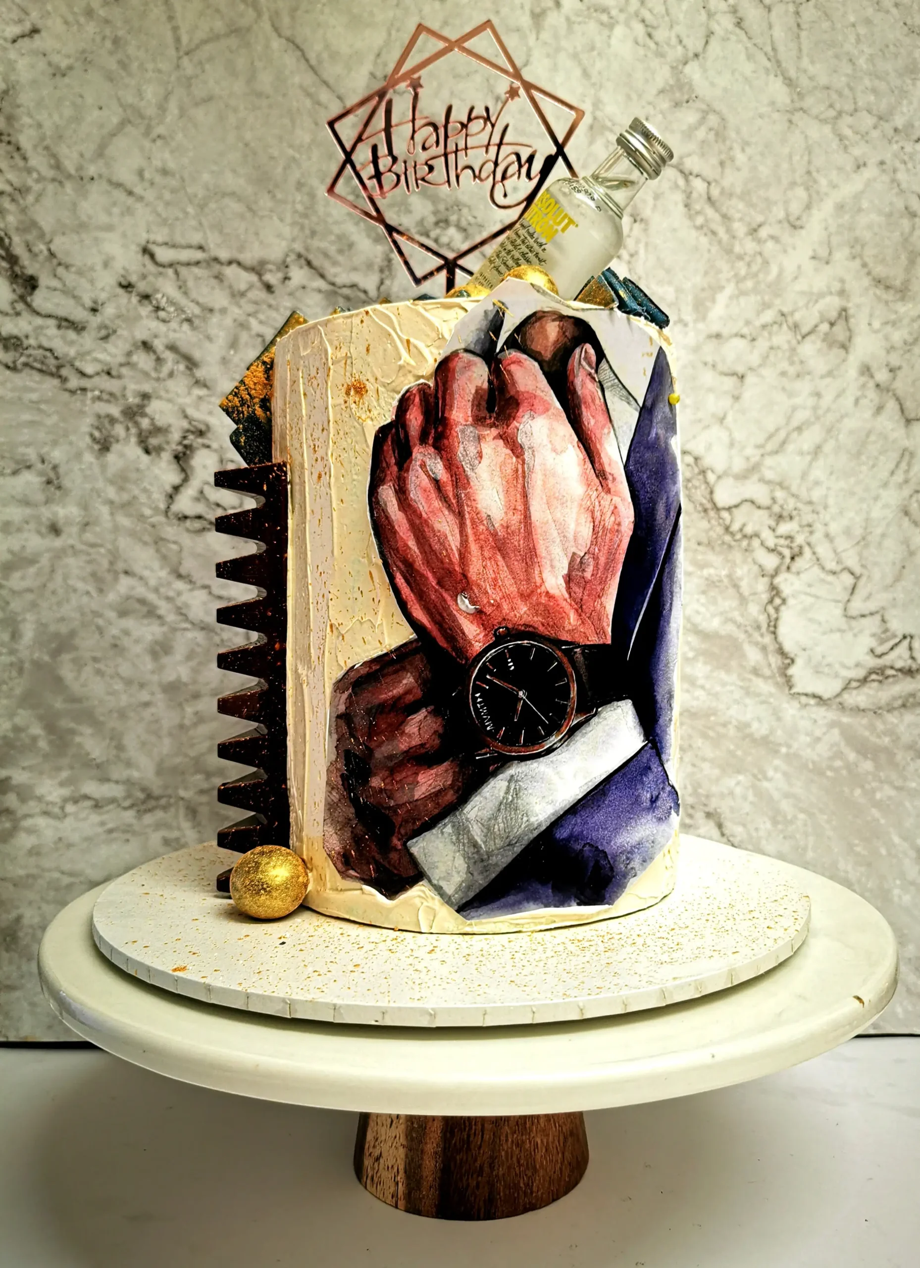 Yes, we love creating masculine designs with their style. We also create stunning minimalist cakes perfect for a man’s celebration.